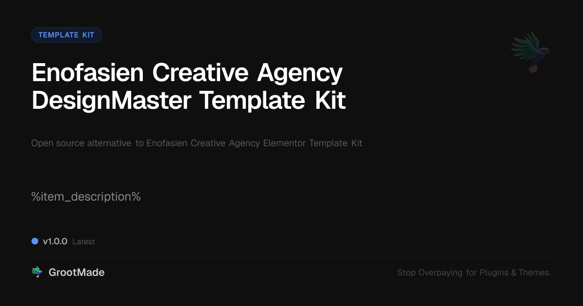 GrootMade is not affiliated with Enofasien Creative Agency Elementor Template Kit and provides an open-source alternative.