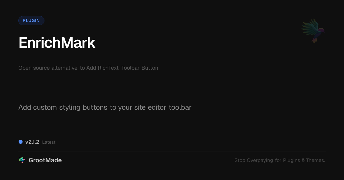GrootMade is not affiliated with Add RichText Toolbar Button and provides an open-source alternative.