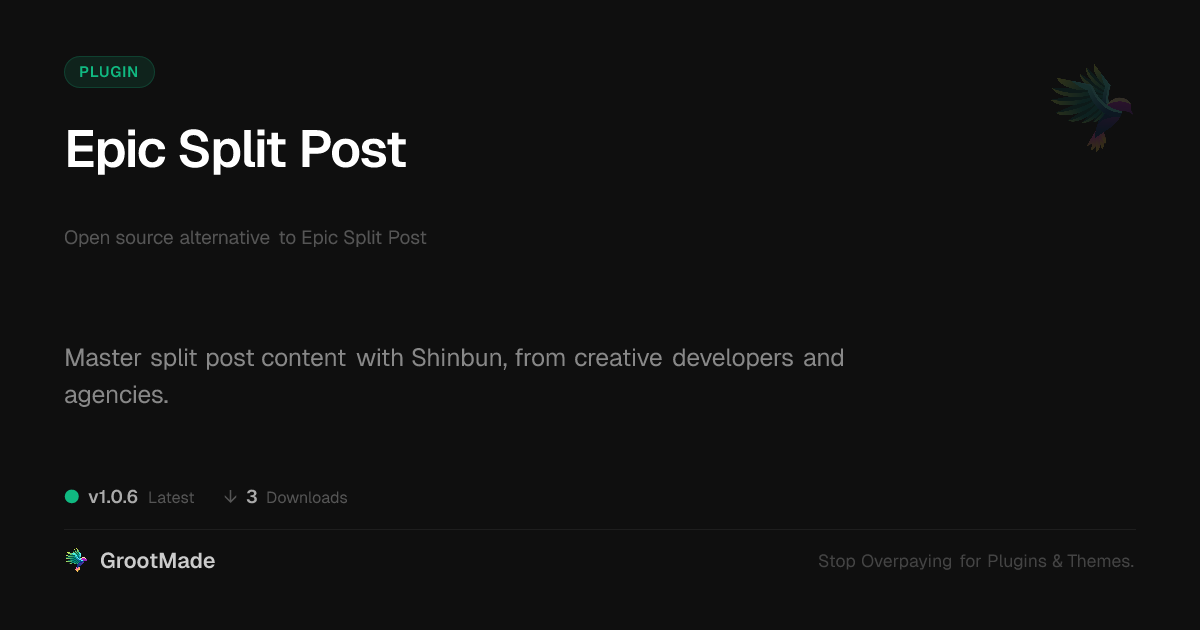 | Tags | editorial workflow, long-form content, multi-page posts, content layout plugin, post management, creative content display, dual column post, split post plugin, website content divider, download monitor integration, php script repository, dynamic content builder, Pagination, Content Splitting, Article Organization, Reading Experience, Content Segmentation, digital identity control, post navigation, recent profile visitors |