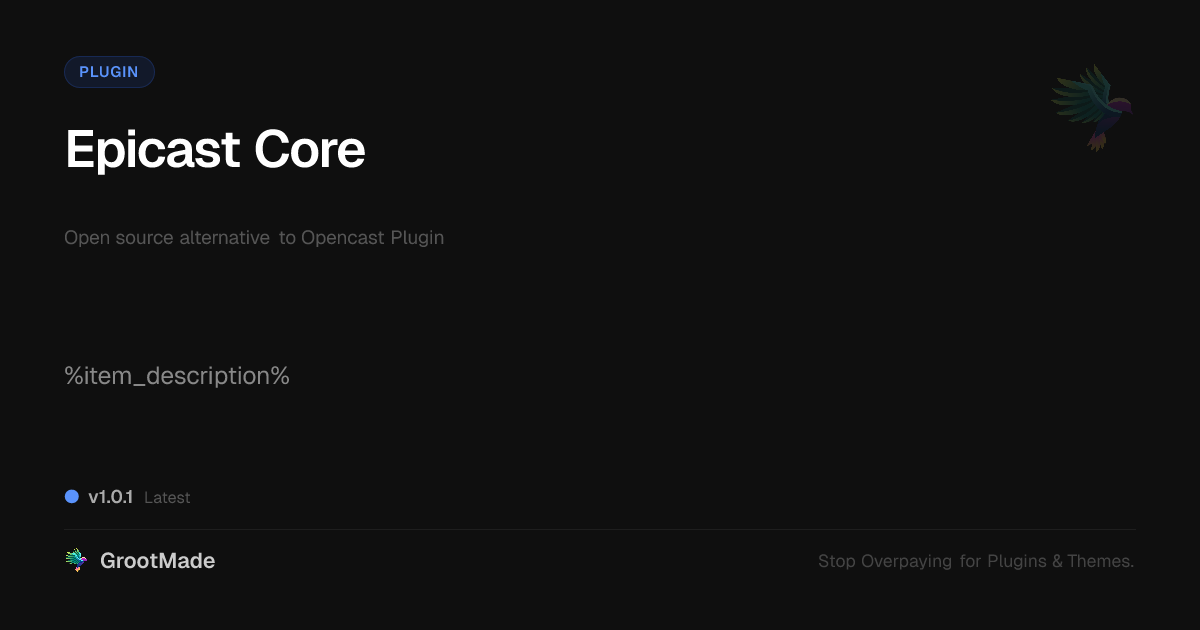 GrootMade is not affiliated with Opencast Plugin and provides an open-source alternative.