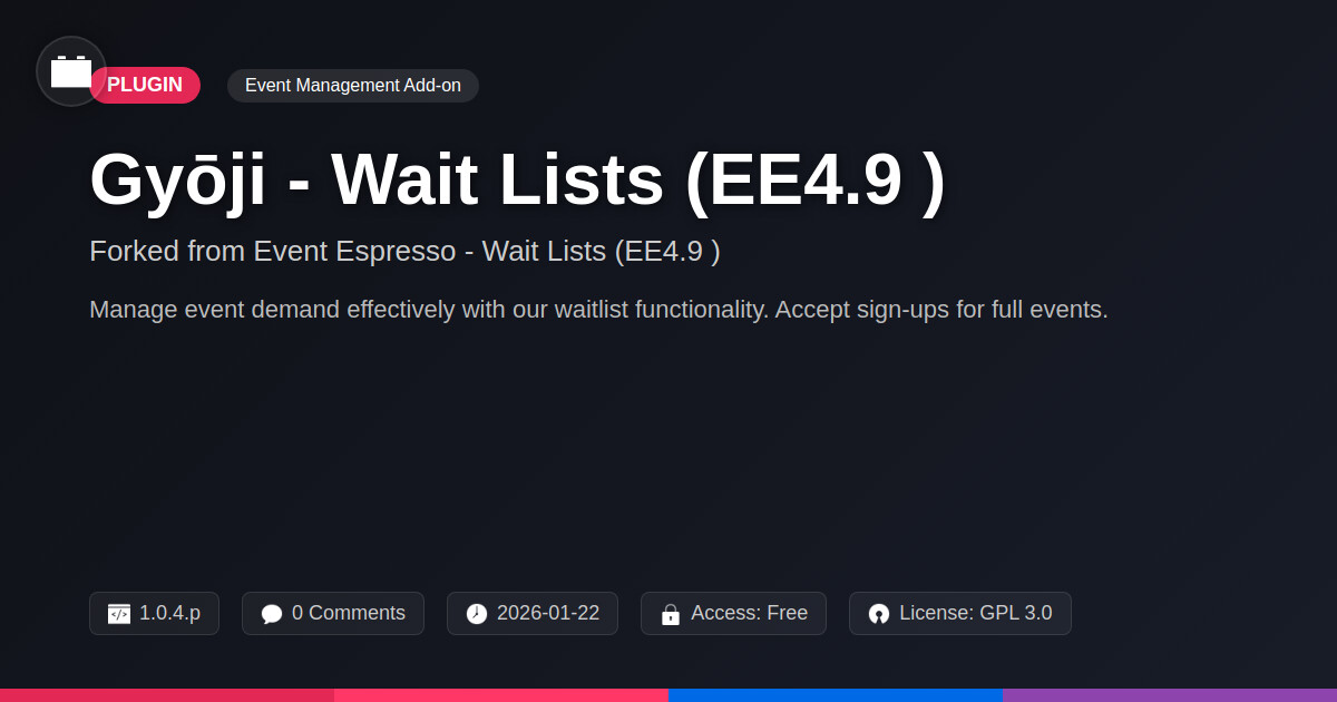 | Forked from | Event Espresso - Wait Lists (EE4.9+) |