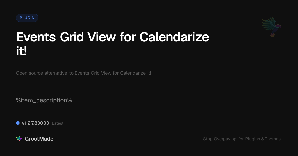 GrootMade is not affiliated with Events Grid View for Calendarize it! and provides an open-source alternative.