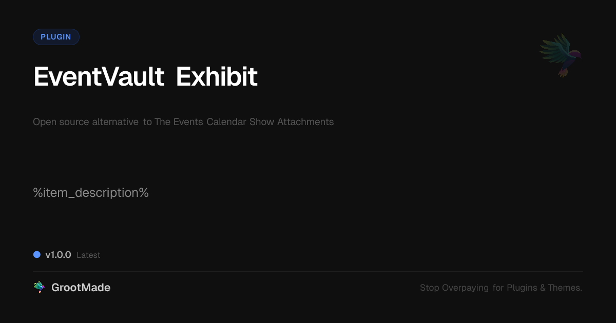 GrootMade is not affiliated with The Events Calendar Show Attachments and provides an open-source alternative.