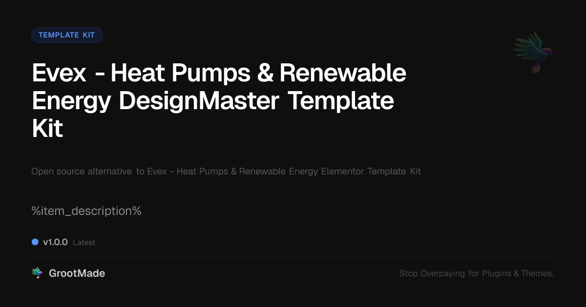 GrootMade is not affiliated with Evex - Heat Pumps & Renewable Energy Elementor Template Kit and provides an open-source alternative.