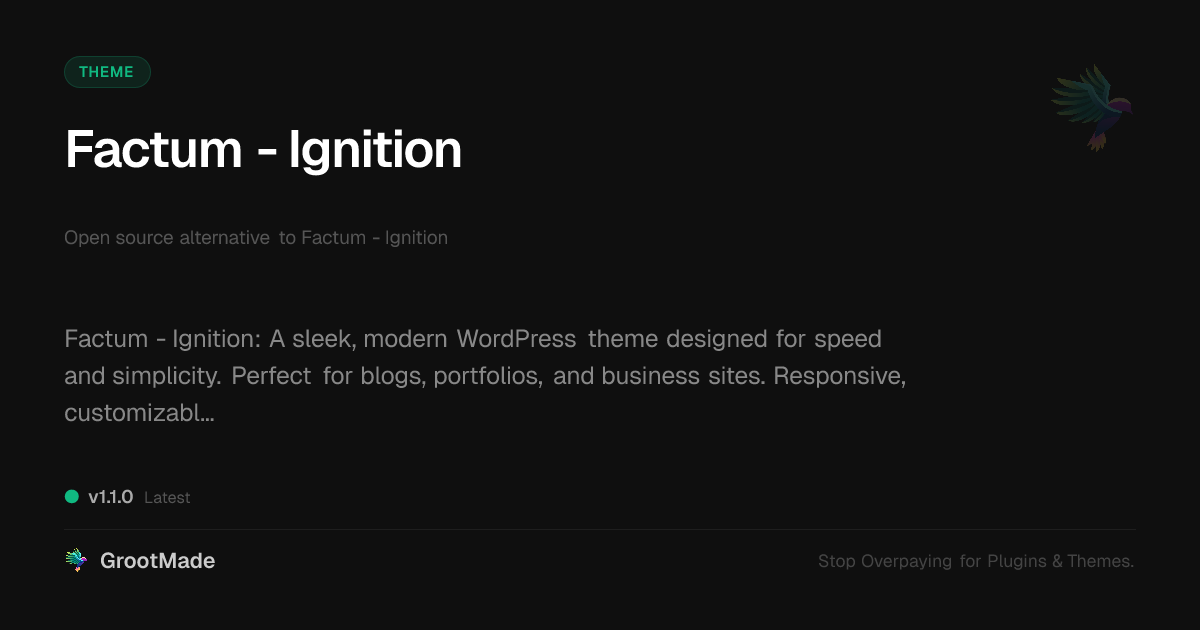 No Affiliation: We are providing a redistributed/forked version of this Theme in accordance with the GPL license. We are NOT affiliated with, sponsored by, or endorsed by WP, WC, Automattic Inc., or the original creators of this product.