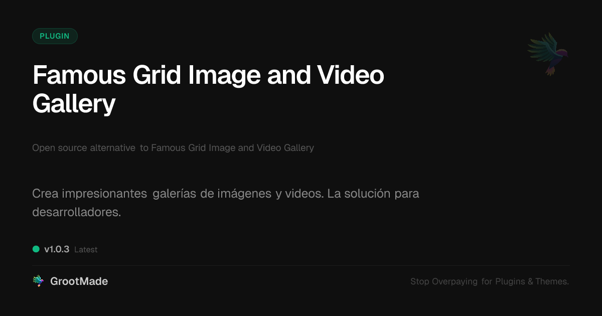 | Tags | image gallery, gallery plugin, gallery, showcase, video gallery, WP community tools, product likes plugin, multilingual translation, morphing animations, Grid, Multimedia, Media, Images, Content, Layout, Videos, Display, Visual, digital identity control, online community safety, directory comparison, responsive gallery, portfolio, responsive, web development tools, user contact form |