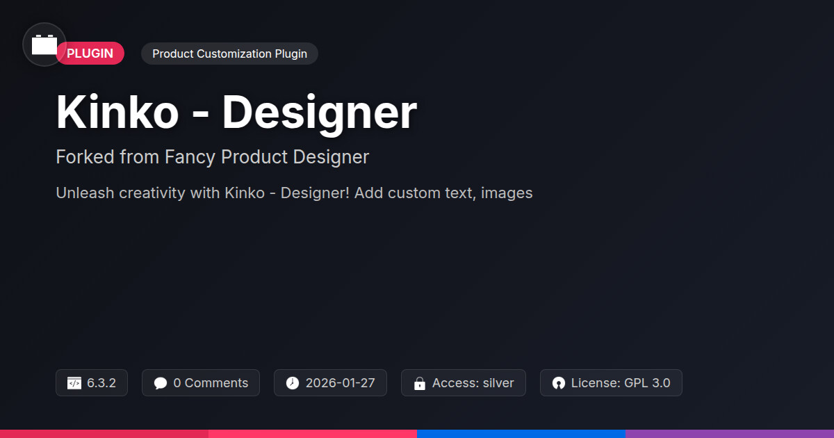 | Tags | design tool, customization, customization plugin, customizer, online designer, product customizer, personalization plugin, fast checkout, Product Design, Product Configurator, Personalized Products, Print On Demand, Web To Print, product metadata indexing, member profile enhancements, WC, Ecommerce |