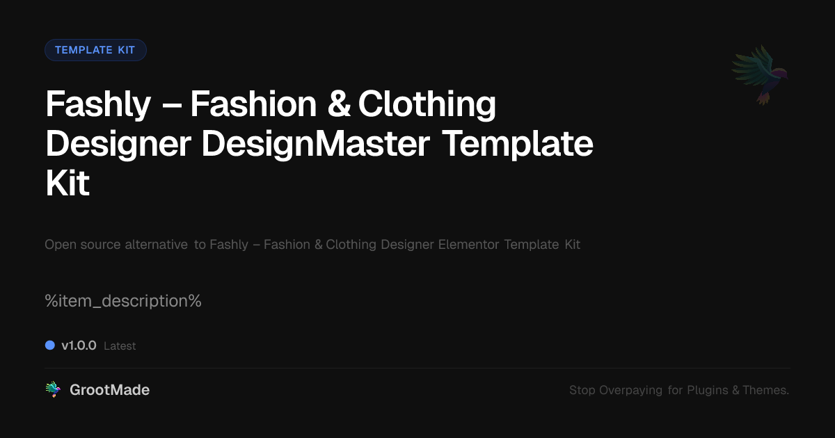 GrootMade is not affiliated with Fashly – Fashion & Clothing Designer Elementor Template Kit and provides an open-source alternative.