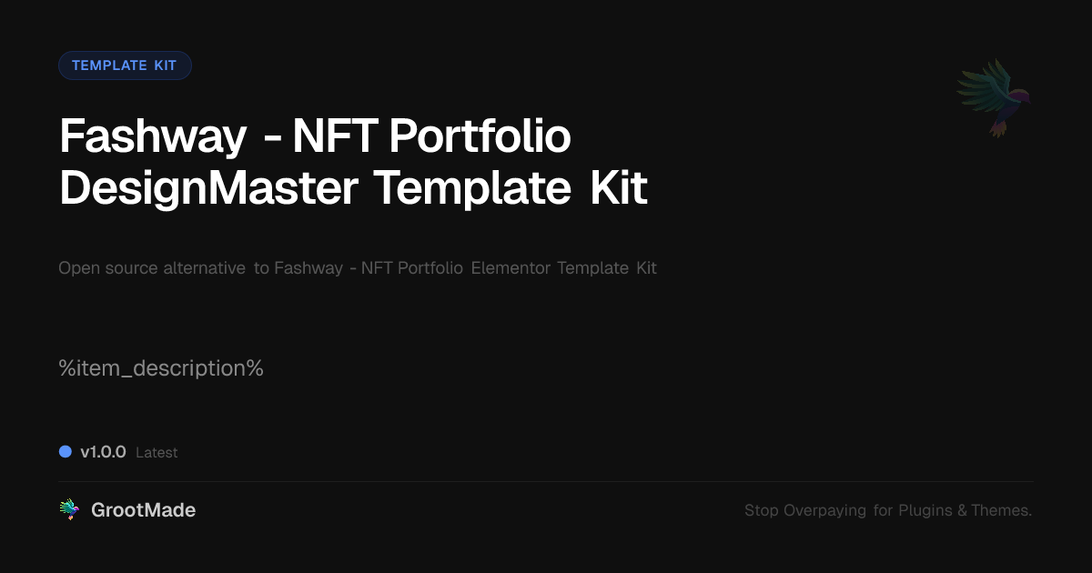 GrootMade is not affiliated with Fashway - NFT Portfolio Elementor Template Kit and provides an open-source alternative.