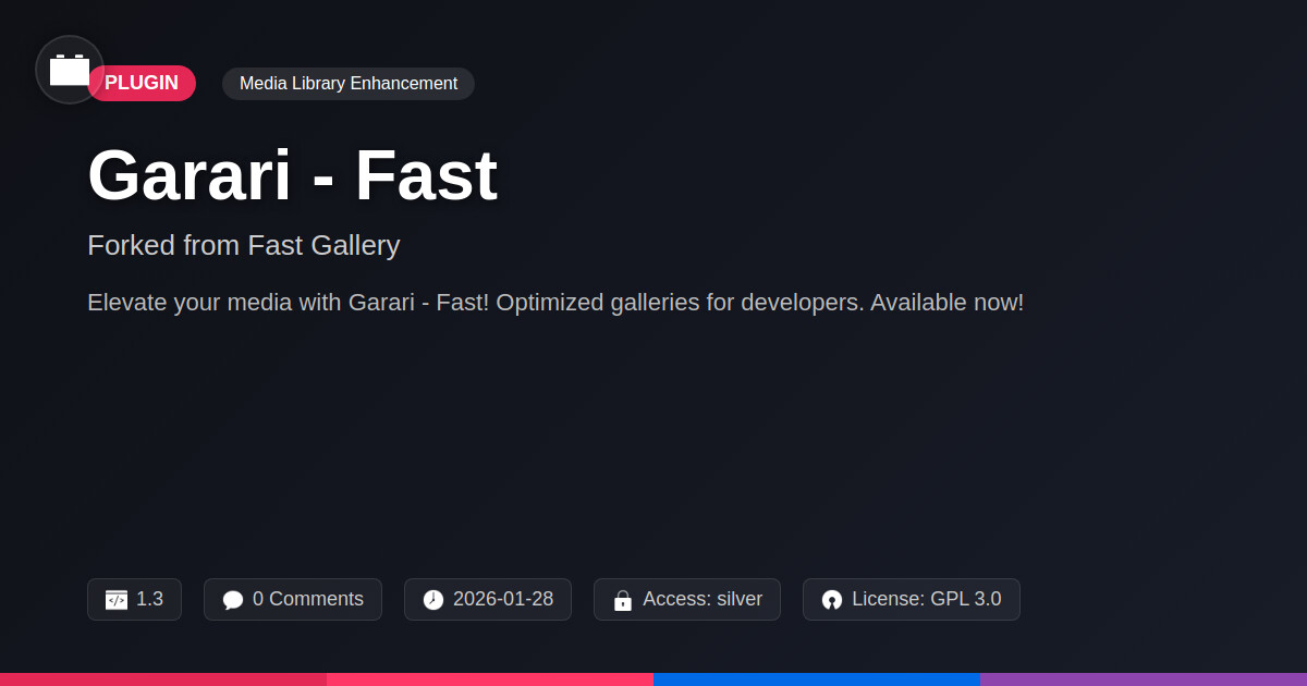 | Tags | performance optimization, image gallery, gallery plugin, media library plugin, gallery, image management, WP community tools, advanced custom fields clone, Lightweight, Fast Loading, performance, photo gallery, responsive gallery, WP gallery, recent profile visitors, Media Gallery, responsive, user contact form, member communication plugin |