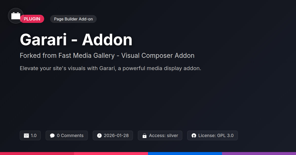 | Tags | responsive design, page builder extension, visual content display, image gallery, media management, web design, visual composer, video gallery, media gallery addon, online asset management, WP community tools, international website, Multimedia, content builder, WP plugin, Media Gallery, web development tools, user contact form, member communication plugin |