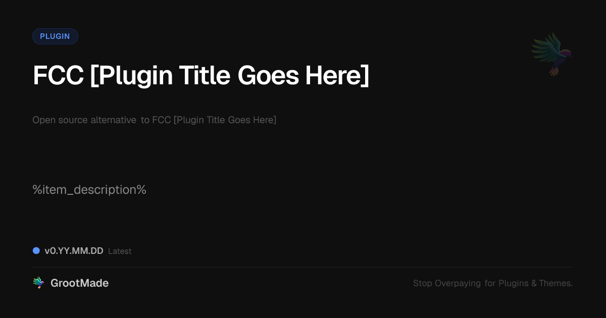 GrootMade is not affiliated with FCC [Plugin Title Goes Here] and provides an open-source alternative.