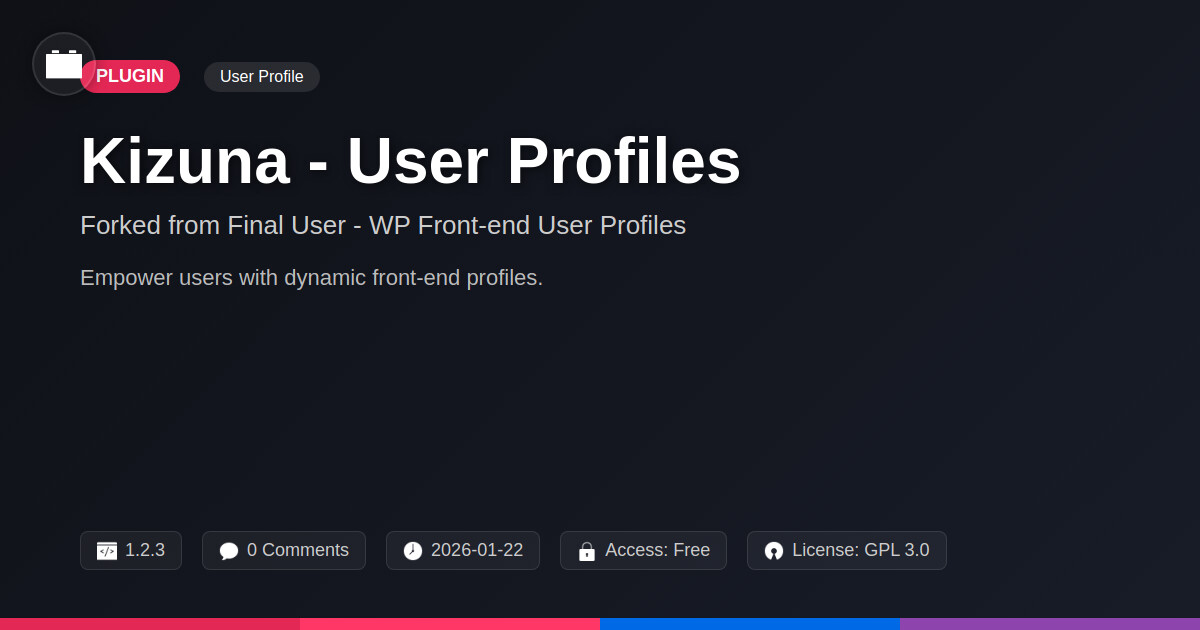 | Tags | Membership, user profiles, custom user fields, user profile plugin, php developer tools, profile builder, member profiles, user directory, wp user profiles, download forms, dynamic web elements, seo theme, User Accounts, User Data, frontend user management, user management, profile tab builder, Community, Social Network |