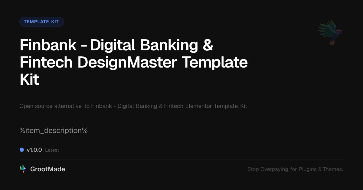 GrootMade is not affiliated with Finbank - Digital Banking & Fintech Elementor Template Kit and provides an open-source alternative.