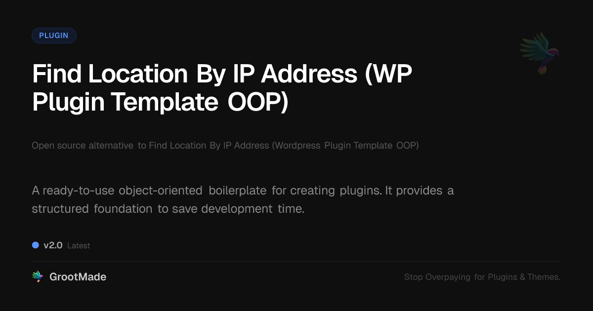 GrootMade is not affiliated with Find Location By IP Address (WP Plugin Template OOP) and provides an open-source alternative.