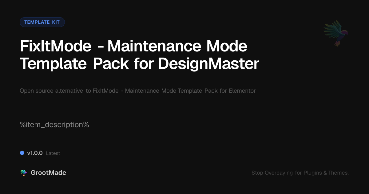 GrootMade is not affiliated with FixItMode - Maintenance Mode Template Pack for Elementor and provides an open-source alternative.