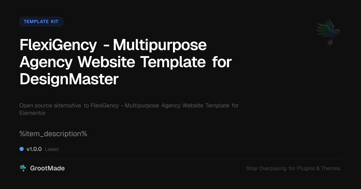 GrootMade is not affiliated with FlexiGency - Multipurpose Agency Website Template for Elementor and provides an open-source alternative.