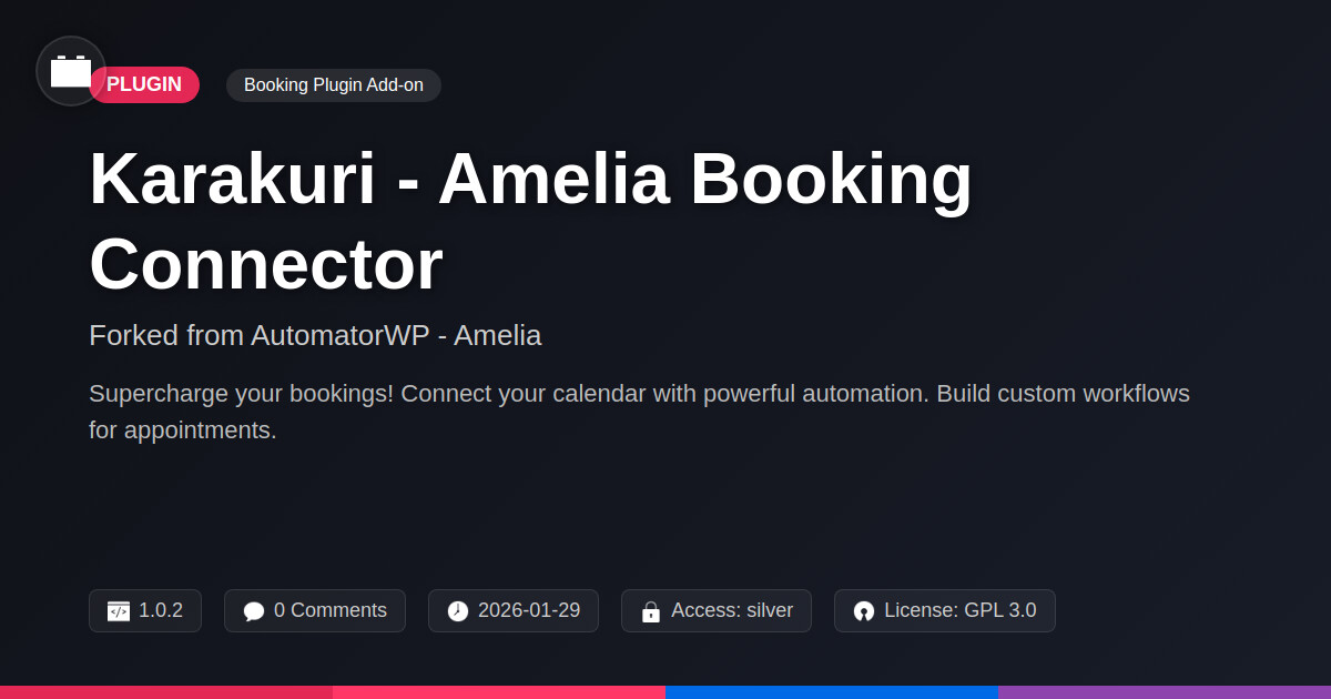 | Tags | workflow automation, appointment automation, gallery themes, Scheduling, Workflow, Triggers, Appointments, Bookings, Amelia, automation, open source plugin, multilingual website plugin, online community safety, Digital Downloads, data visualization tools, Events, profile tab builder, integration, user role visibility, user contact form, member communication plugin, booking integration, Actions |