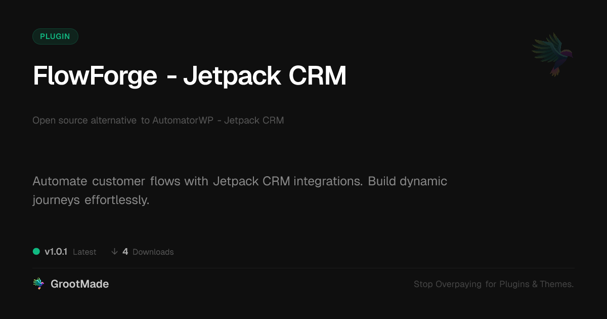 | Tags | customer journey builder, contact management automation, crm workflows, jetpack crm automation, lead nurturing system, digital product sales email, gallery themes, Sales, Workflow, Triggers, Leads, Jetpack, automation, crm, profile tab builder, integration, user role visibility, marketing, user contact form, member communication plugin, Actions |