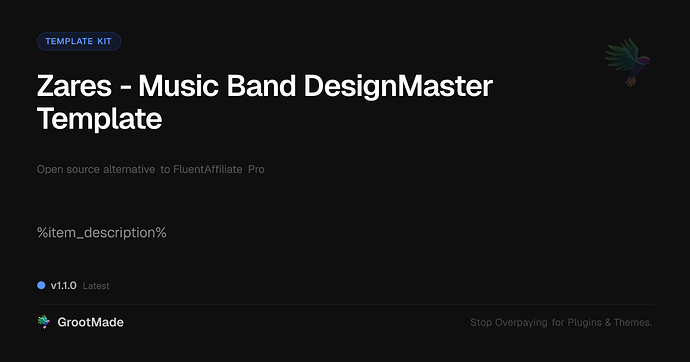 Hey Ryan. Just letting you know that FluentAffiliate is still sitting here: Zares - Music Band DesignMaster Template: %item_description% – GrootMade