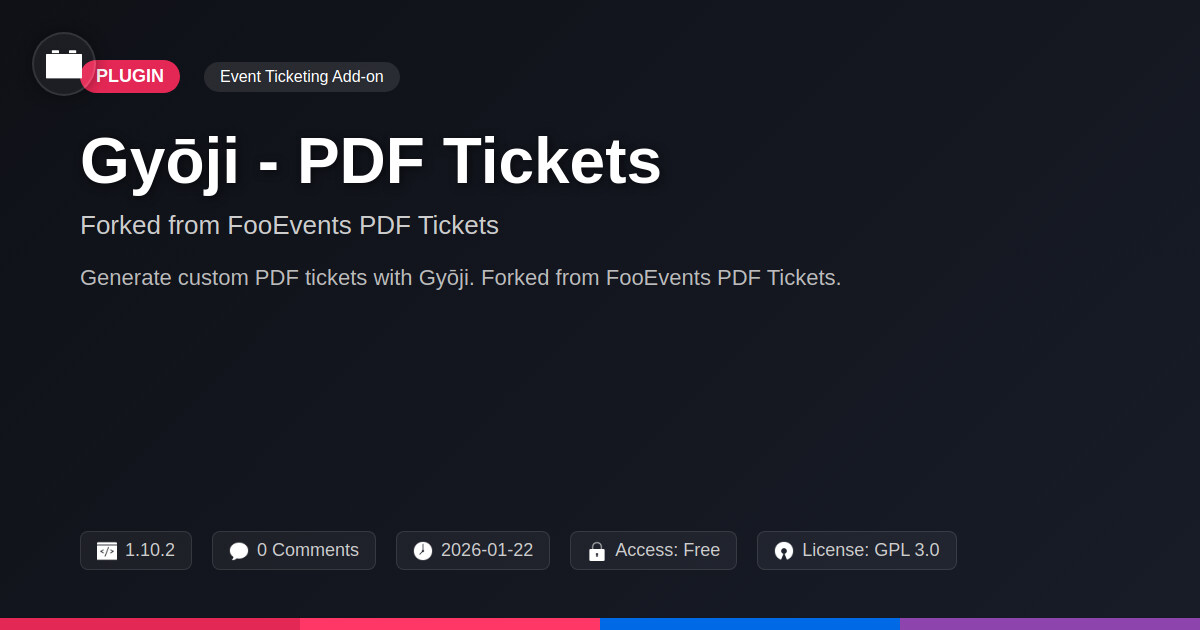 | Tags | event ticketing plugin, open source ticketing, event ticket design, pdf ticket generator, content spotlight plugin, Event, Download, Orders, Reservation, Tickets, Pdf, Digital, Booking, WC, profile tab builder, Ecommerce, customizable event tickets |