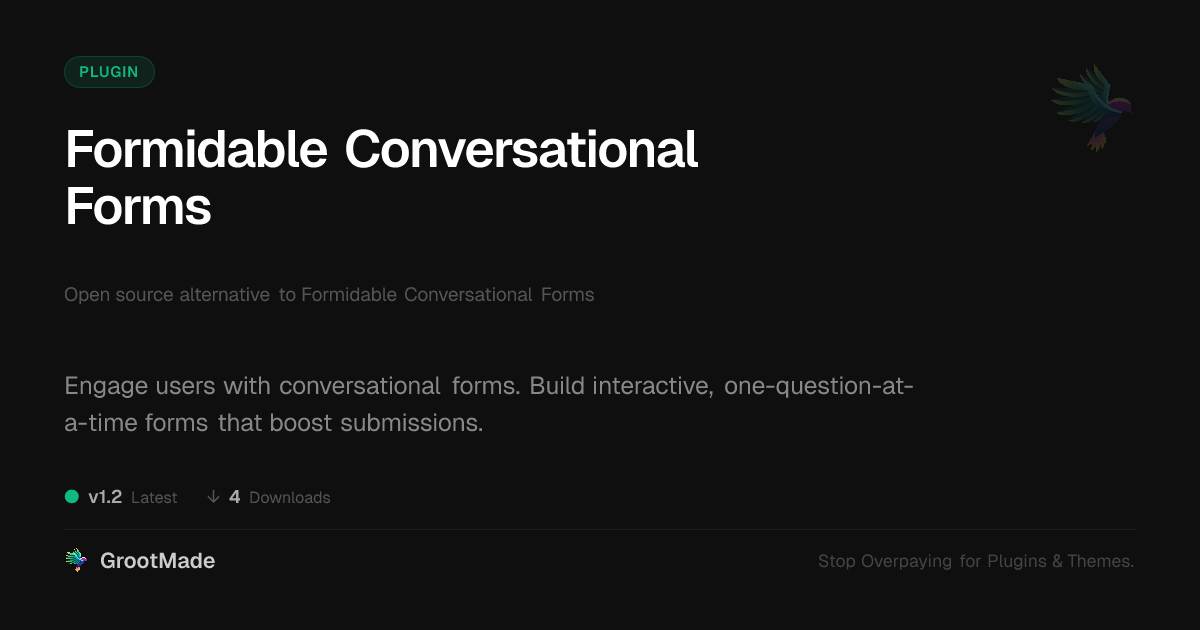 GrootMade is not affiliated with Formidable Conversational Forms and provides an open-source alternative.