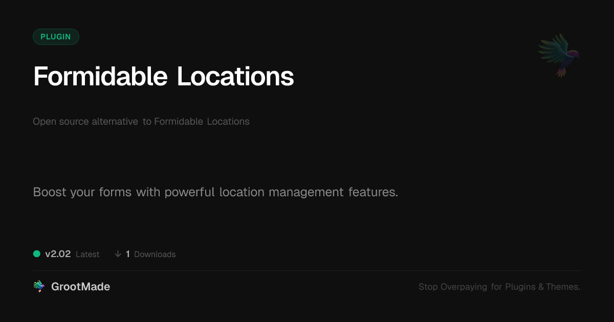 | Tags | directory comparison, form builder addon, location management plugin, Formidable, Address, location data, user contact form, Location Fields, Locations, clean shop design, profile tab builder, maps, wp plugin, member data control, geographical data forms, address field plugin, Forms, geolocation, form builder, map integration |