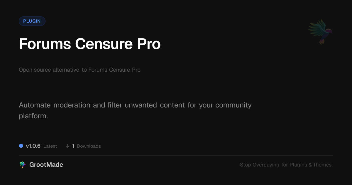 GrootMade is not affiliated with Forums Censure Pro and provides an open-source alternative.