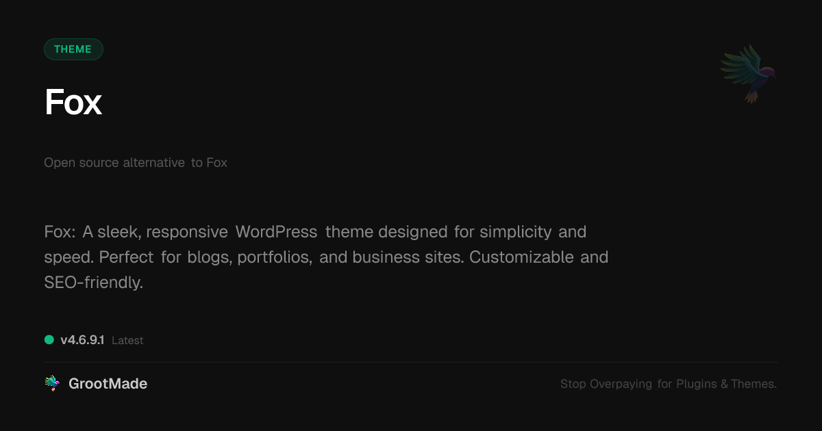 No Affiliation: We are providing a redistributed/forked version of this Theme in accordance with the GPL license. We are NOT affiliated with, sponsored by, or endorsed by WP, WC, Automattic Inc., or the original creators of this product.