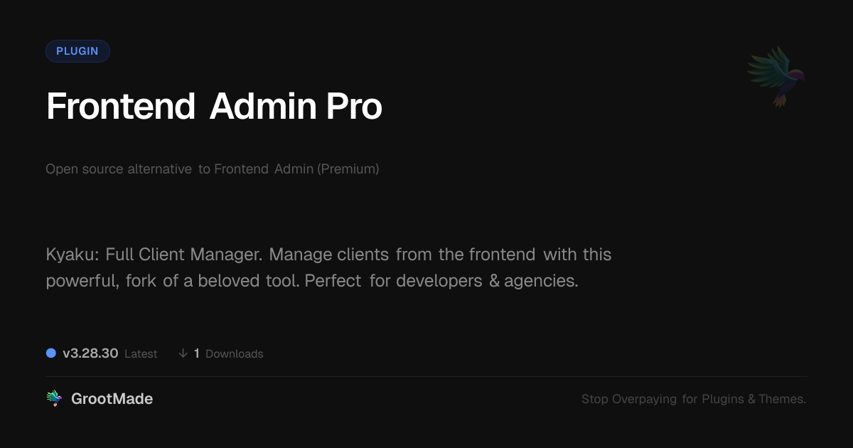 GrootMade is not affiliated with Frontend Admin (Premium) and provides an open-source alternative.