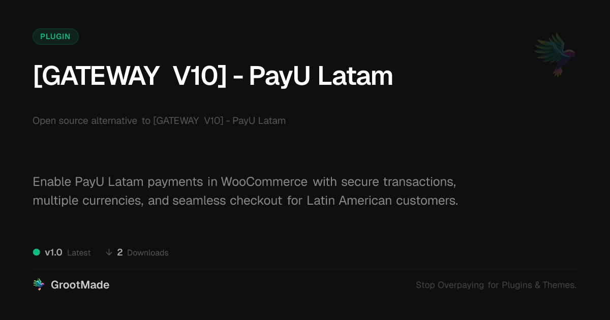 GrootMade is not affiliated with [GATEWAY V10] - PayU Latam and provides an open-source alternative.