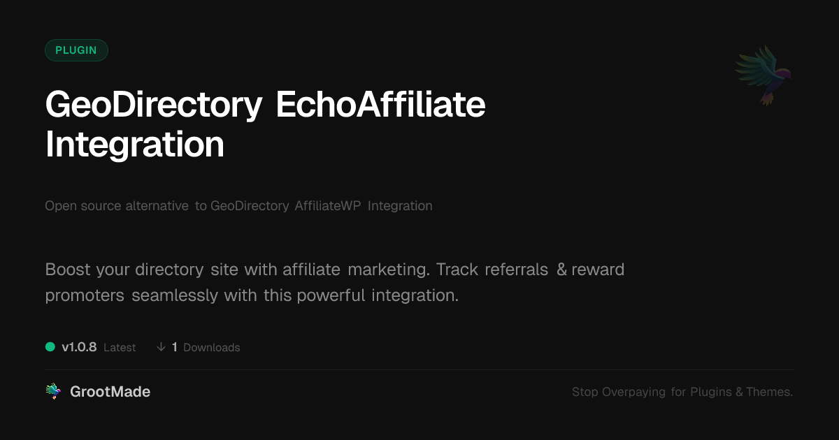 GrootMade is not affiliated with GeoDirectory AffiliateWP Integration and provides an open-source alternative.