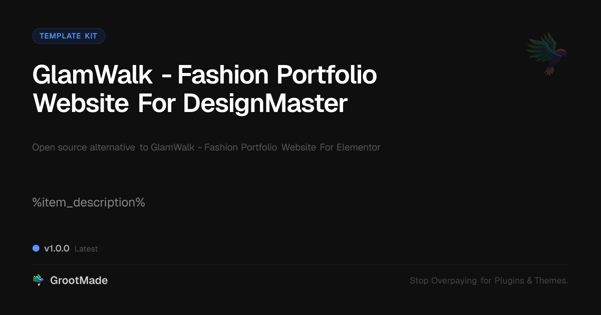 GrootMade is not affiliated with GlamWalk - Fashion Portfolio Website For Elementor and provides an open-source alternative.