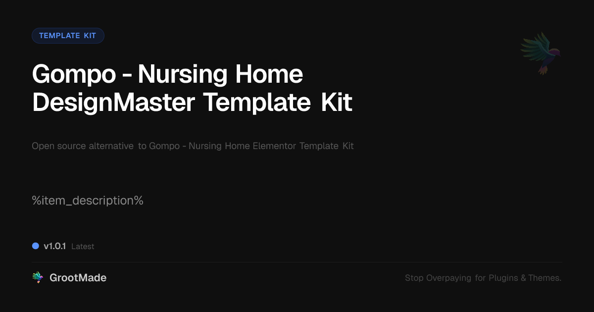 GrootMade is not affiliated with Gompo - Nursing Home Elementor Template Kit and provides an open-source alternative.