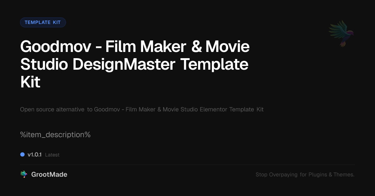 GrootMade is not affiliated with Goodmov - Film Maker & Movie Studio Elementor Template Kit and provides an open-source alternative.