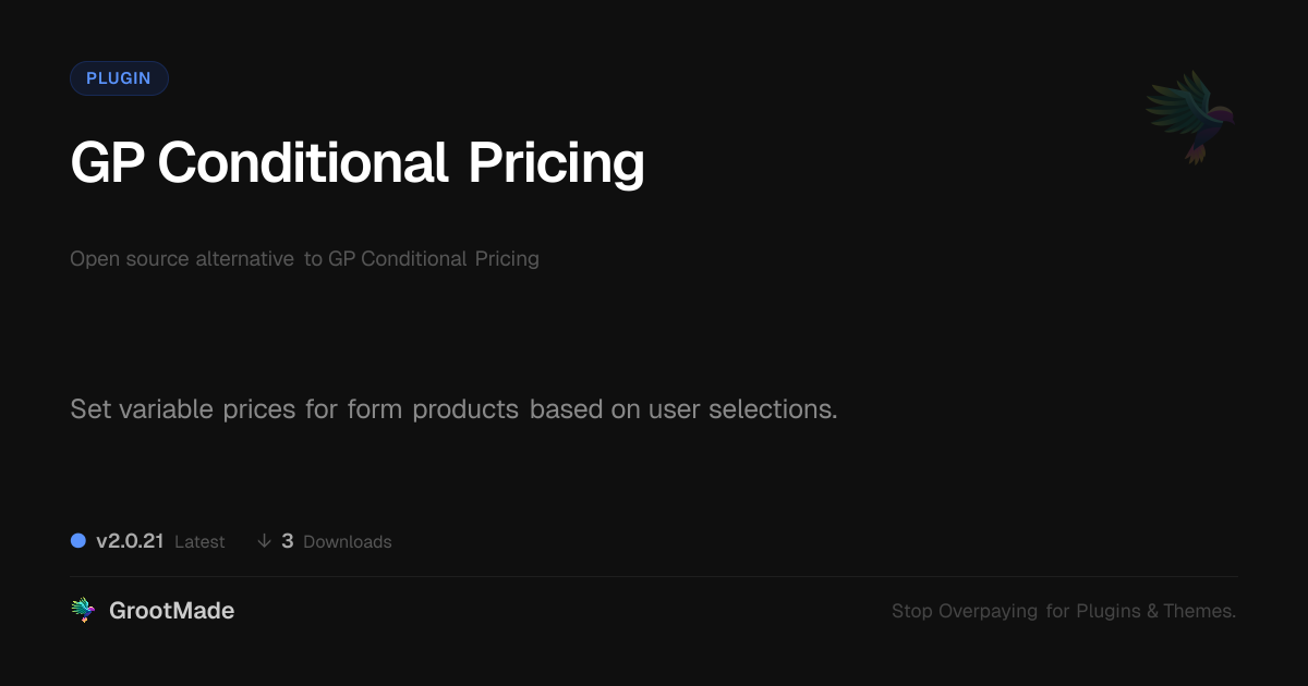 GrootMade is not affiliated with GP Conditional Pricing and provides an open-source alternative.