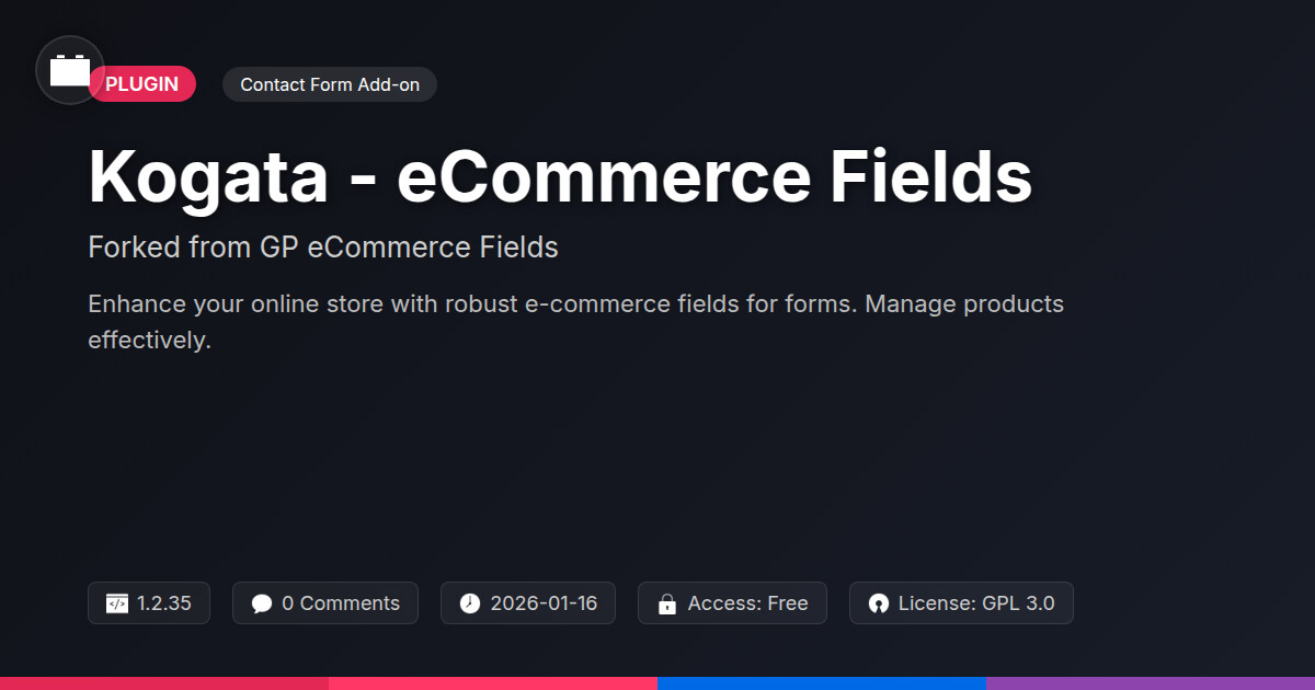 | Tags | product metadata indexing, data tracking software, online store, shop management, product fields, Sales, WC, digital product sales email, user role visibility, online sales, user contact form, Ecommerce, product options, payment forms, form fields, form customization, member communication plugin, ecommerce forms, member profile enhancements, custom fields, Order Forms, Checkout |