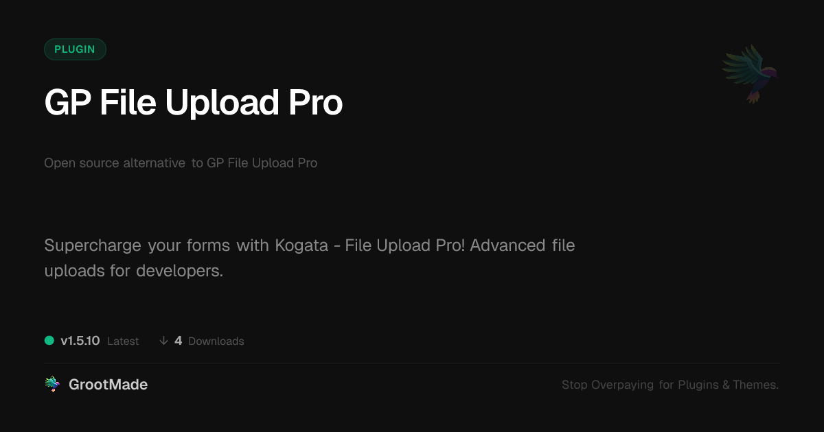 GrootMade is not affiliated with GP File Upload Pro and provides an open-source alternative.