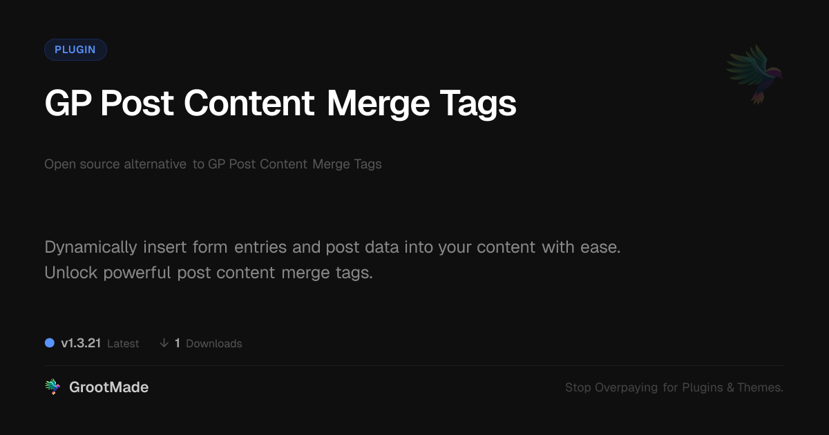 GrootMade is not affiliated with GP Post Content Merge Tags and provides an open-source alternative.