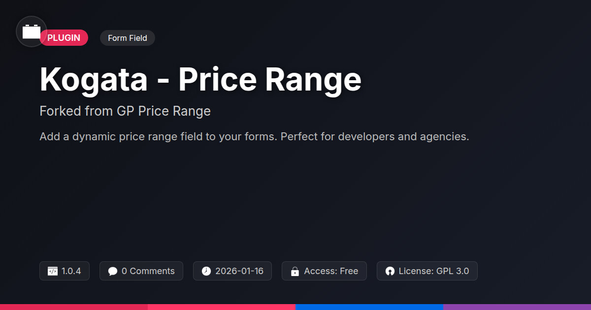Tags product pricing, Price Range, price range field, directory comparison, product metadata indexing, Pricing Filter, online store, WC, Pricing, Ecommerce, Digital Downloads, Price Slider, visual promotion addon, ui component, form field type, member profile enhancements, digital identity control, product catalog, gravity forms add-on, site plugin, shop