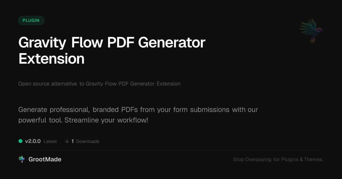 | Tags | Gravity Forms, Business Automation, document generation, form automation, pdf generation, form to pdf converter, workflow automation, user role visibility, Gravity Flow, user contact form, Local Business, profile tab builder, pagination addon, pdf generator plugin, Pdf Templates, form submissions, custom pdf templates, document creation, workflow management, site automation |