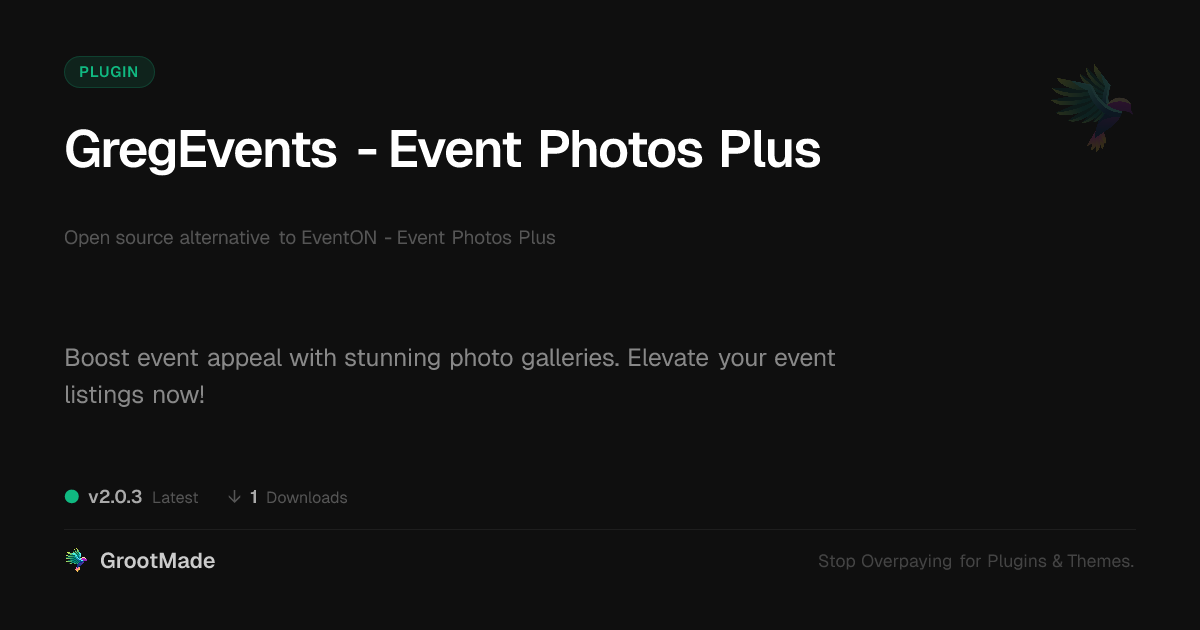 GrootMade is not affiliated with EventON - Event Photos Plus and provides an open-source alternative.