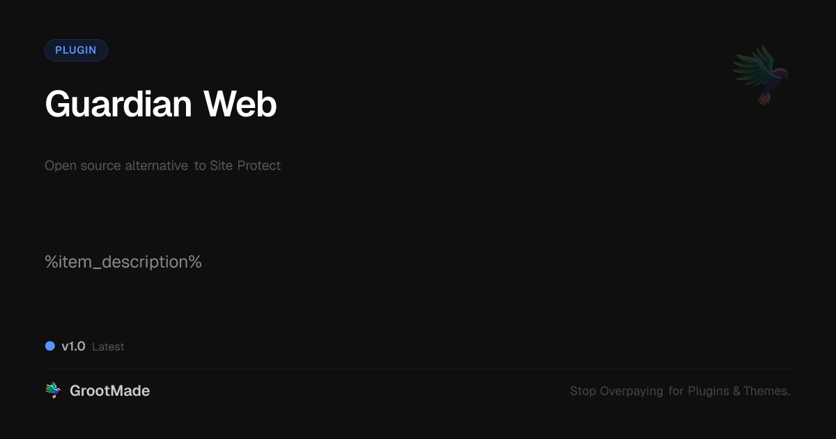 GrootMade is not affiliated with Site Protect and provides an open-source alternative.