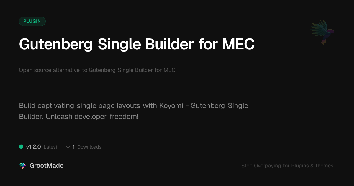 | Tags | open source builder, layout builder, content editor tools, single page builder, gutenberg, content spotlight plugin, Event Customization, Modern Events Calendar, Event Builder, Event Design, Single Event, Event Template, Event Theming, block editor, Digital Downloads, event management, profile tab builder, user role visibility, user contact form |