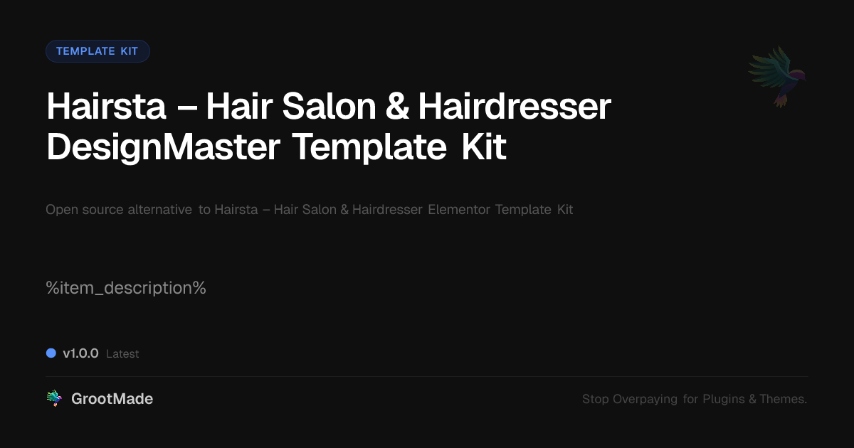 GrootMade is not affiliated with Hairsta – Hair Salon & Hairdresser Elementor Template Kit and provides an open-source alternative.