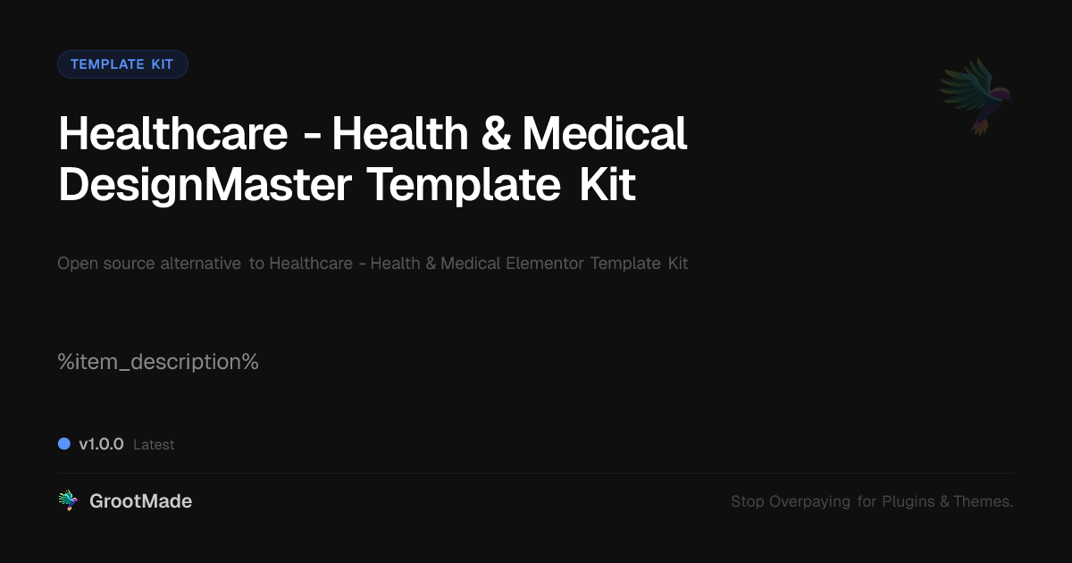 GrootMade is not affiliated with Healthcare - Health & Medical Elementor Template Kit and provides an open-source alternative.