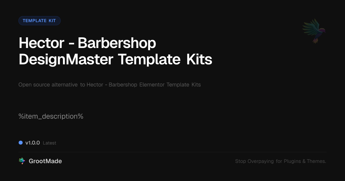 GrootMade is not affiliated with Hector - Barbershop Elementor Template Kits and provides an open-source alternative.