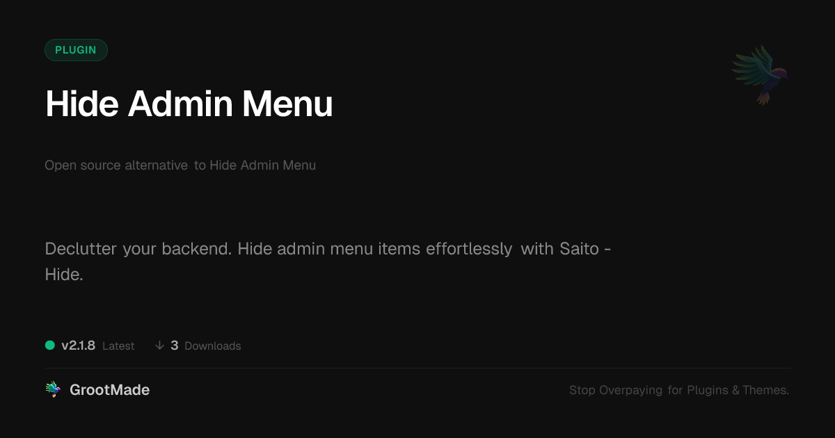 | Tags | site administration, backend customization, dashboard cleanup, hide admin menu, php script repository, morphing animations, Content, Posts, Secure, Protection, Pages, Visibility, Members, Restricted, Private, Hide, digital identity control, Digital Downloads, recent profile visitors, profile tab builder, user contact form |