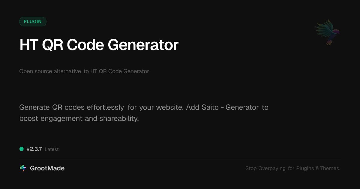 | Tags | engagement tool, qr code generator, customization, qr code, cms qr plugin, url shortener alternative, website qr code, payment status, form to download link, site creator, Tools, Scanning, Contactless, Shortcodes, Sharing, Generator, profile tab builder, integration, business, Widgets, user role visibility, automation, marketing |