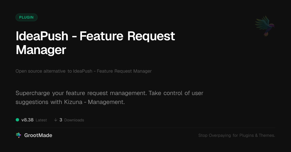 | Tags | product feedback, development workflow, idea management, feature request manager, open source project management, user suggestions, product roadmap, classifieds theme alternative, Elearning, Voting System, Feature Requests, Customer Suggestions, User Ideas, user feedback, Feedback Management, online community safety, profile tab builder, community engagement, feedback tool, user role visibility, user contact form |